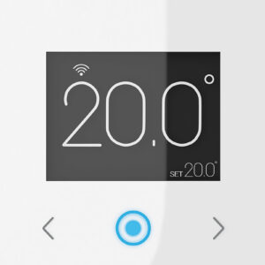 Termostato modulante branco para controlo avançado de conforto 360º: regule as suas configurações e controle várias fontes de energia.
